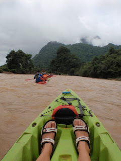 Just before we got back to Vang Vieng it started raining. It was quite beautiful to watch the mountains get covered in clouds. We would recommend tubing. If you're not silly, you'll have a great day on the river. The kayaking is a lot more worthwhile, but tubing is a little more relaxing.